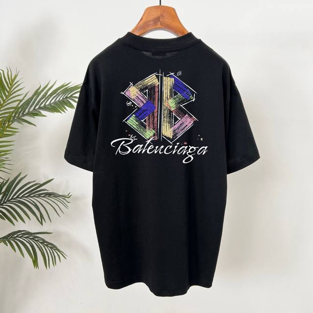 Balenciaga's new summer collection features 250g Sorona cotton fabric, super soft and skin-friendly! Adorned with a premium hand-painted logo print, the lining boasts neat and meticulous stitching, creating a stylish and trendy look! A high-end, versatile piece, quality you can trust! Sizes: S-XL Colors: Black, White