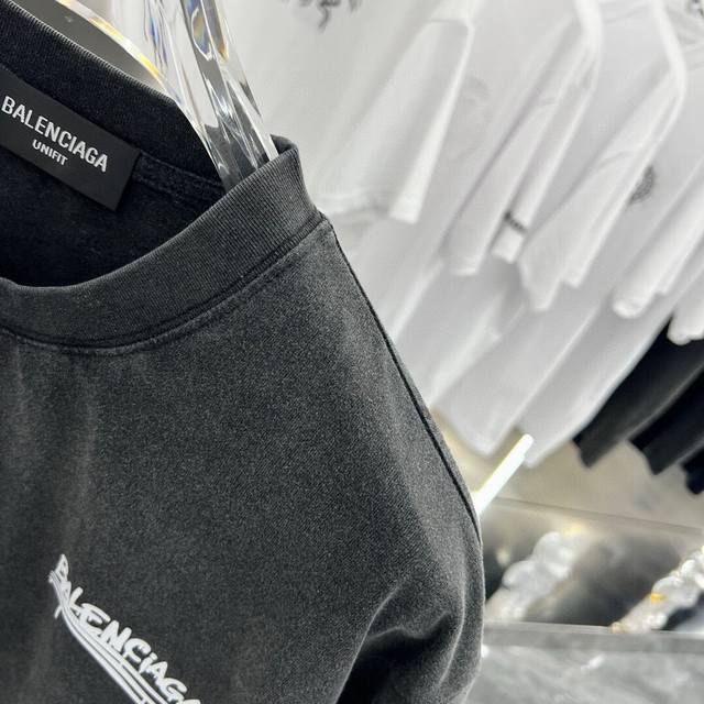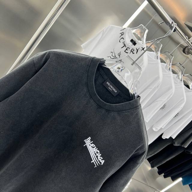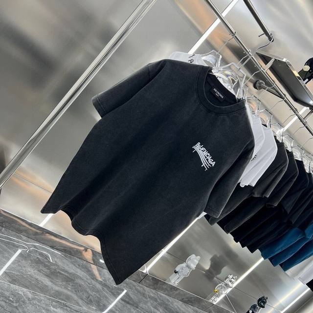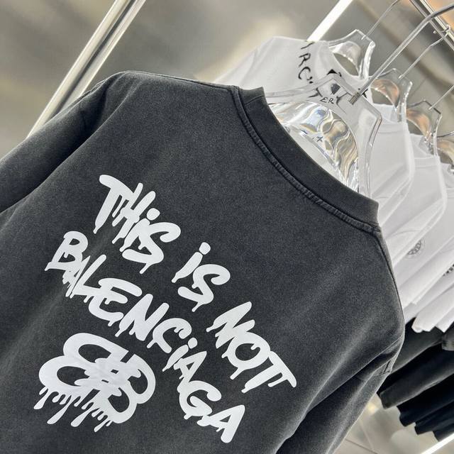 Balsenciaga2025Ss American acid-washed distressed letter print couple casual short-sleeved T-shirt