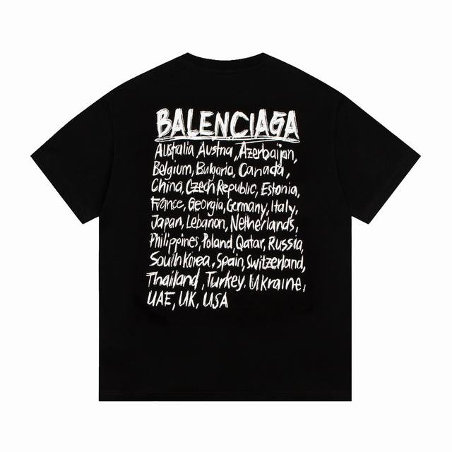 Dbb530# Balenciaga graffiti letter print short sleeves Loose version uses 260g c