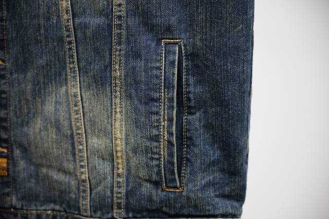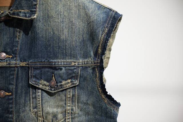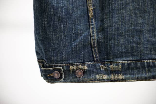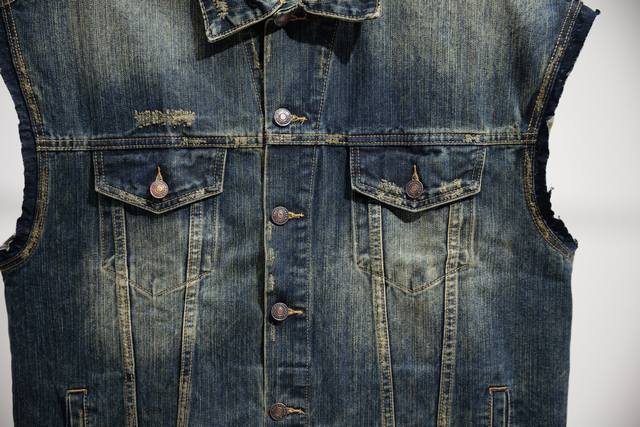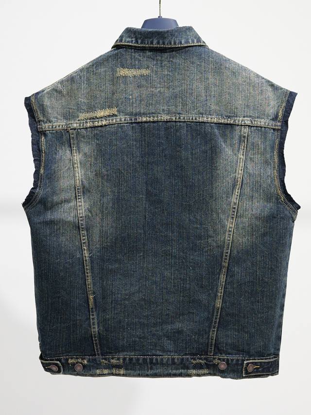 Distinguishing features Ddd | New Ing DDD Men's Denim Sleeveless Bomber Jacket Ddd with 2 button pockets on the chest Ddd 2 slanted pockets Ddd Balenciaga sculpted elastic buttons Ddd Ddd: Washed Blue Ddd: Size X4 Ddd