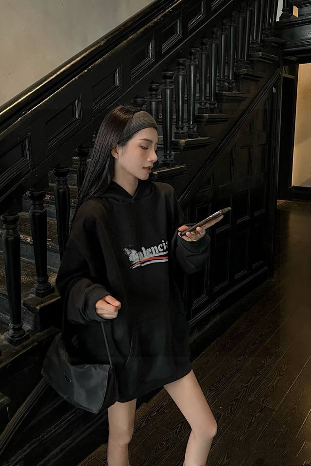 High Quality Product Name: Balenciaga 24SS Autumn/Winter New Blurry Coke Wave Print Hooded Sweatshirt, Unisex Fit: Loose Fit Fabric: Pure Cotton Double-Sided Fabric Color: Black Sizes M L X L Chest Length M 118 72 L 122 73 XL 126 74 Manual measurement may have an error of 1-2cm and is for reference only.
