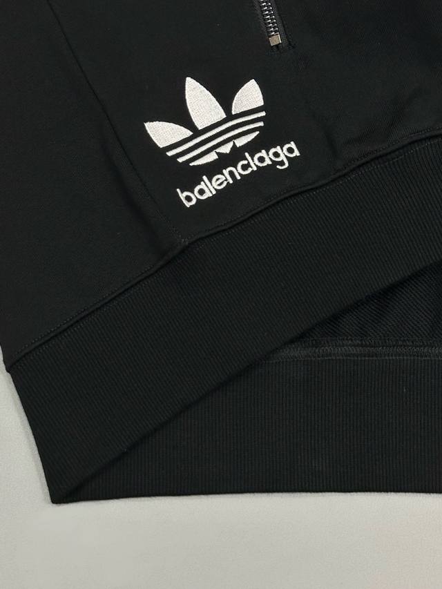 High version] Balenciaga xad Trefoil collaboration zippered chest, developed to order. 420g 100% David double-ply terry cotton YB fabric, molded hardware accessories, webbing and zipper.