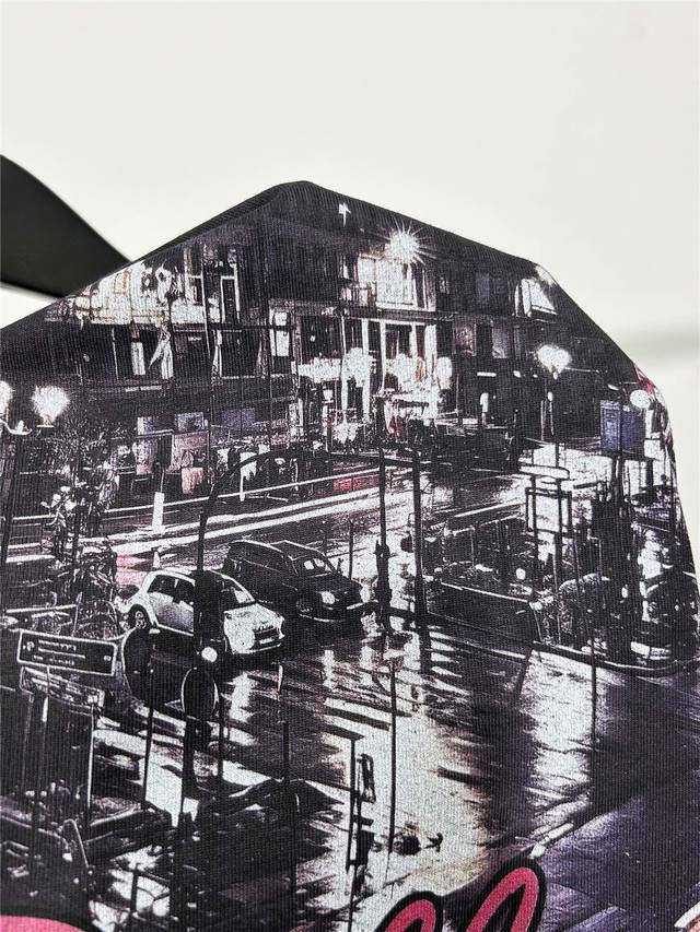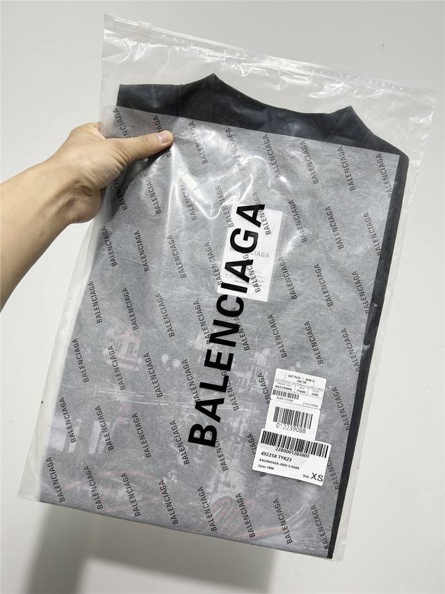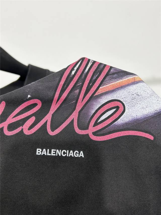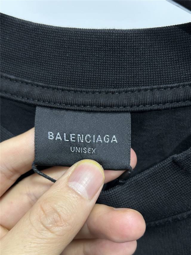 Balenciaga Balenciaga new washed and distressed process! Eiffel Tower Kangli digital print short-sleeved T-shirt on the chest! The pattern uses digital direct injection technology!