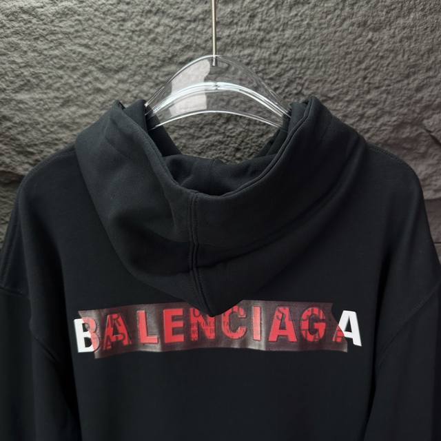High-quality Balenciaga 25Ss embroidered logo hoodie, heavyweight unisex. Made with custom-woven and dyed 480g oversized fabric, resulting in a clean, clear weave, and soft, comfortable feel. Ribbing is custom-dyed for color consistency. The classic logo is meticulously embroidered on a Tajima embroidery machine with transparent adhesive for a three-dimensional effect. Os fit, unisex, details determine quality! Sizes: S-XL