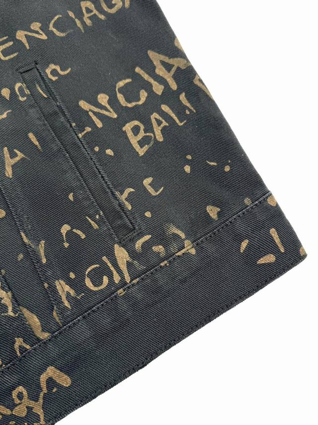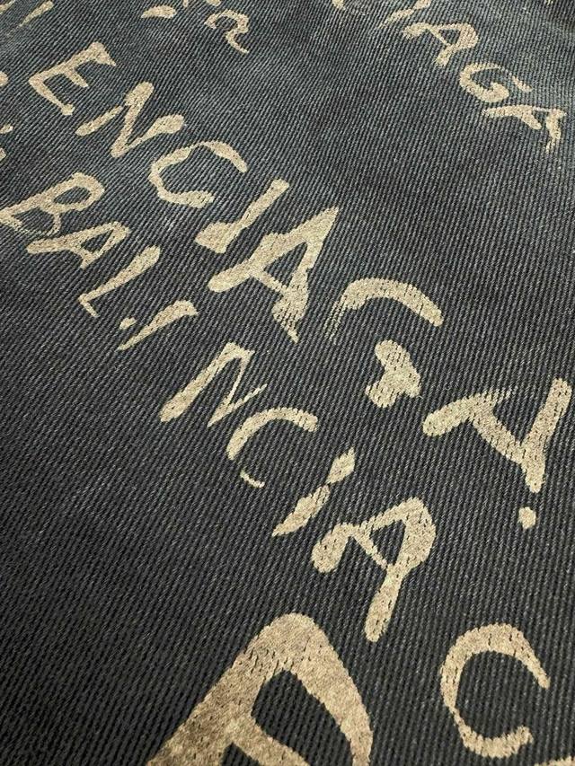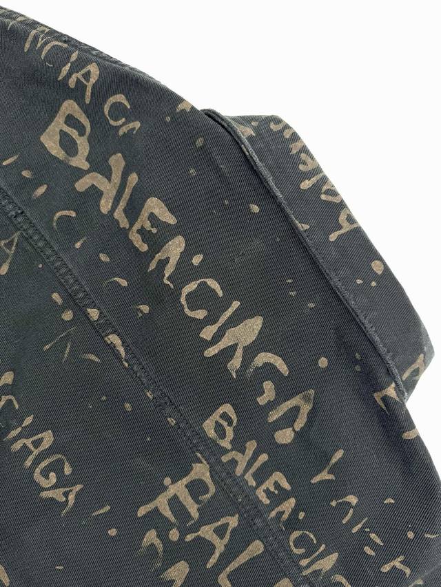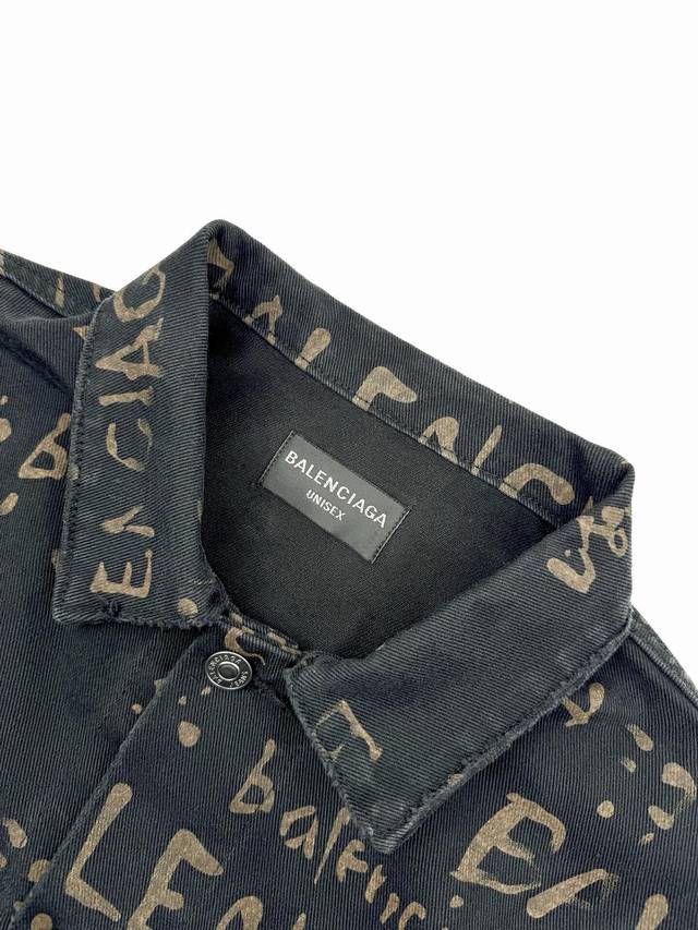High-quality Balenciaga denim jacket with all-over letter print, unisex style. The silhouette is slimming and flattering for all body types. Made with exclusive custom-made pure cotton denim fabric and a special heavy-duty washing process. Features an all-over letter print design and exclusive original logo hardware buttons. Details and workmanship are precisely matched to the original. A must-have item for this fall/winter! Highly recommended for personal use. Sizes: M, L, XL.
