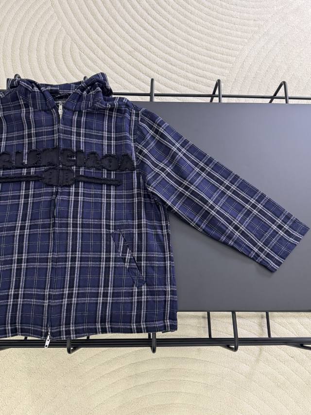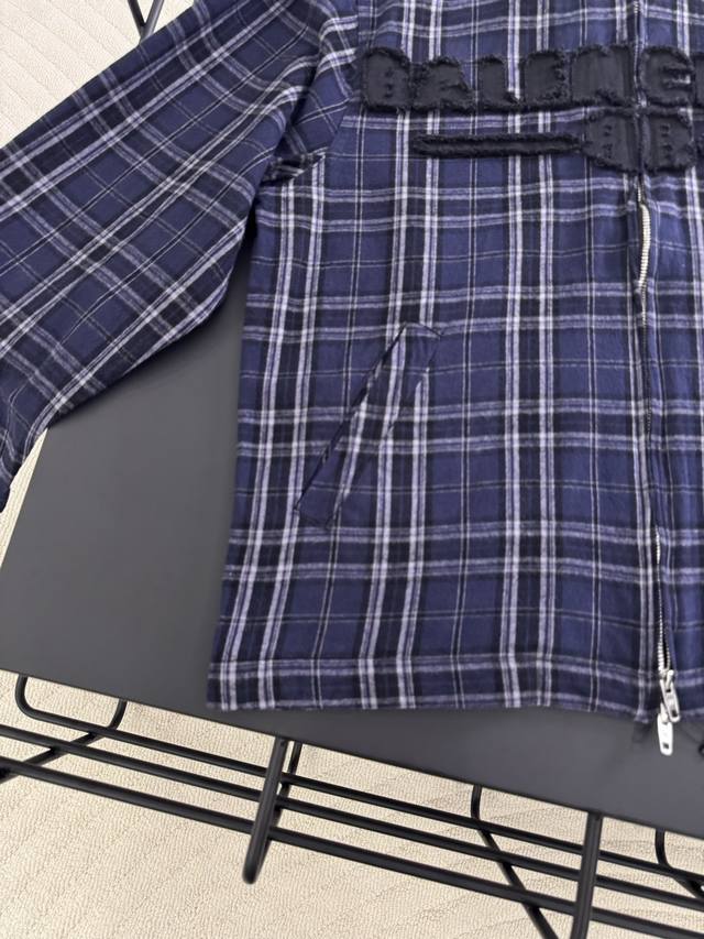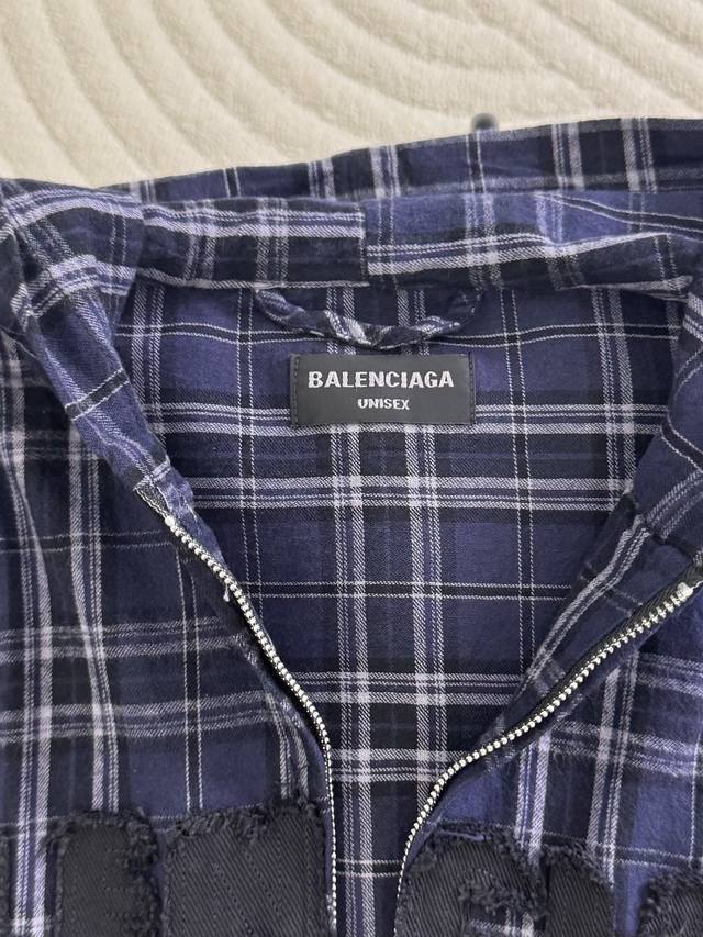K567# Ddd Balenciaga Blcg 25Fw 88 Blue Checkered Appliqu