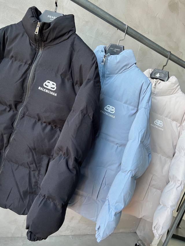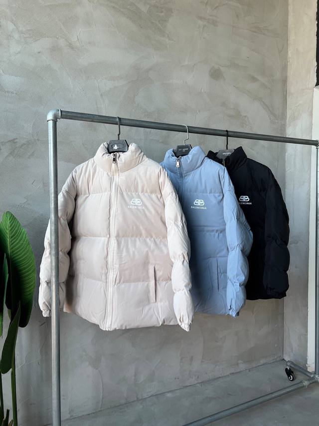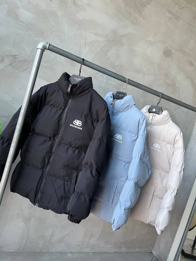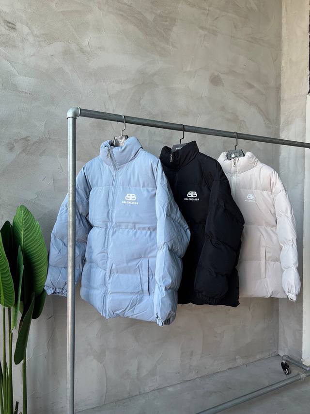 New Arrival! Balenciaga Basic Padded Jacket - High-purity hand-stuffed cotton filling, always available this winter, all tags included. The fabric is coated for windproof and warmth, with elastic cuffs and a double-layered 500g hand-stuffed cotton lining. Features a classic printed logo on the chest, available in three colors, and a relaxed fit suitable for both men and women. Colors: Black, Apricot, Dusty Blue. Sizes: M-3XL.