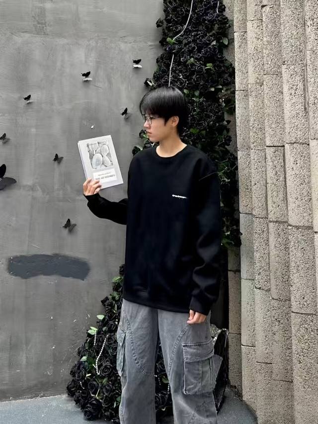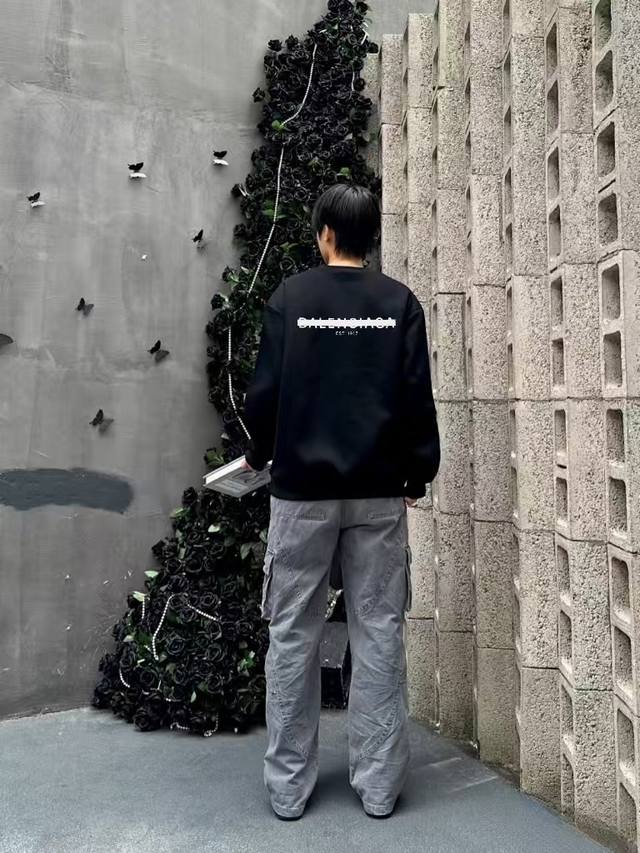 New arrival Balenciaga sealing tape ink altered small printed logo round neck sw