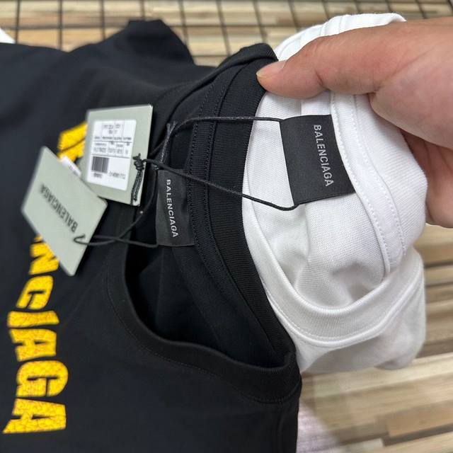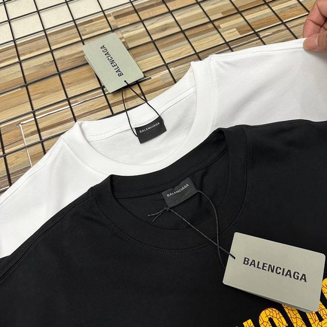 Balenciaga 2025 Spring/Summer new couple's short-sleeved T-shirt, unisex loose-fit base shirt! Counter price around 1300 yuan. The purchasing agent price is also very high. This classic piece sold out in seconds, so be sure to get it. This classic, stylish, and visually striking piece with a strong symbolic feel is unforgettable. Simple yet stylish, this piece is incredibly decorative, making it a standout piece. It's sure to be a hit with those looking to stand out in style, no matter the occasion. Highlights include: hangtag, wash label, collar tag, and packaging. Perfect details! All three labels are included! Highly recommended by the owner! This piece is worn by celebrities on Xiaohongshu and Instagram, and looks incredibly cool! Colors: Black, White. Sizes: M to XXL. Loose fit . M: 70cm long, 48cm wide, 112cm wide. L: 72cm long, 50cm wide, 116cm wide. XXL: 74cm long, 52cm wide, 120cm wide, XXL: 76cm long, 54cm wide, 124cm wide .