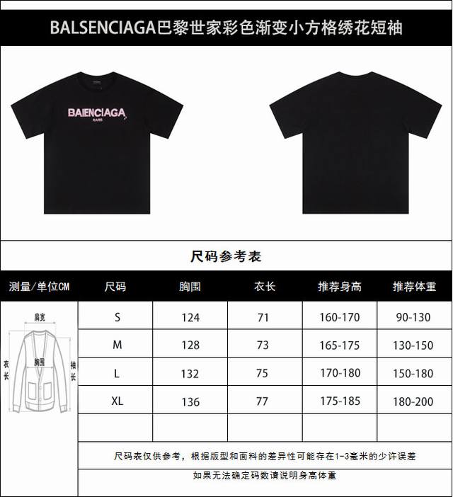 Balsenciaga colorful gradient small square embroidery short sleeves