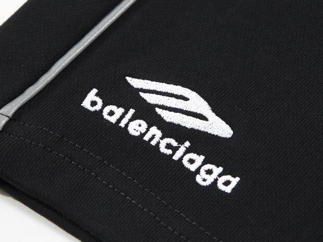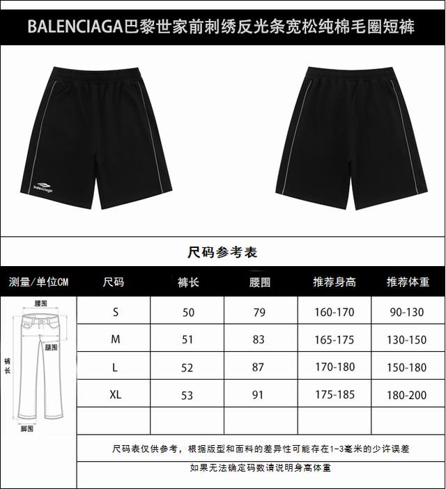 Balenciaga Ss front embroidered reflective strips casual couple loose cotton terry shorts