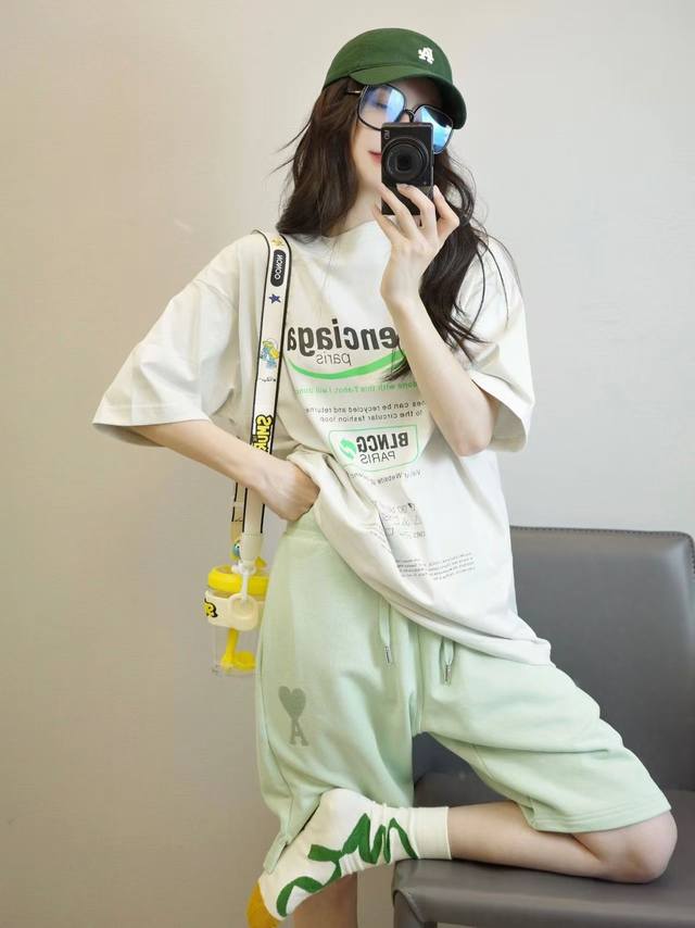 New! High quality! Balenciaga eco-friendly cola couple short-sleeved T-shirt! L