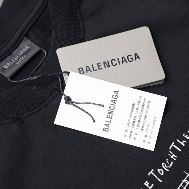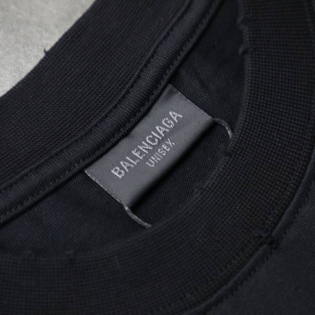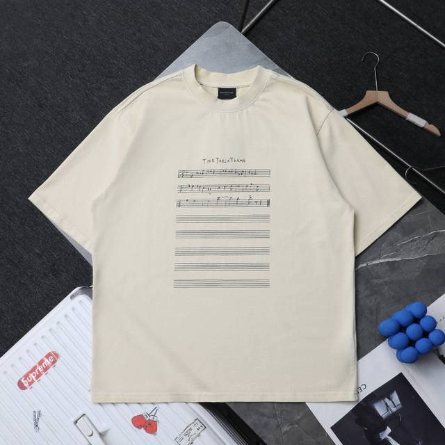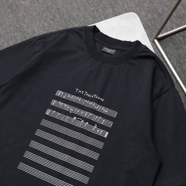 Balenciaga New Musical Notes Hand-painted Letters Printed Distressed Round Neck Short Sleeve T-shirt