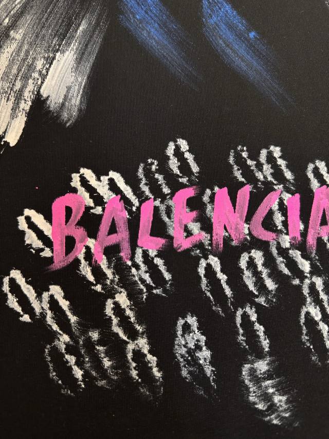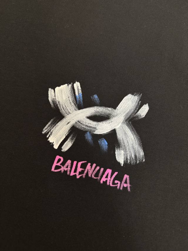 Brand: Balenciaga 25Ss latest top-grade hand-knitted short-sleeved T-shirt with classic lettering and innovative brand elements, iconic logo, graffiti, ink-splashing, and hand-painted craftsmanship, highlighting the brand's charm.