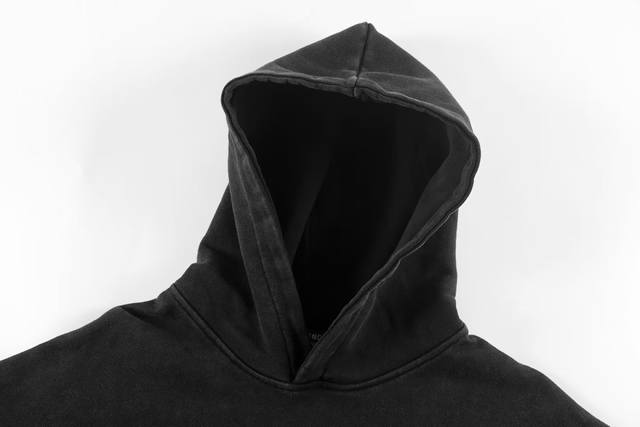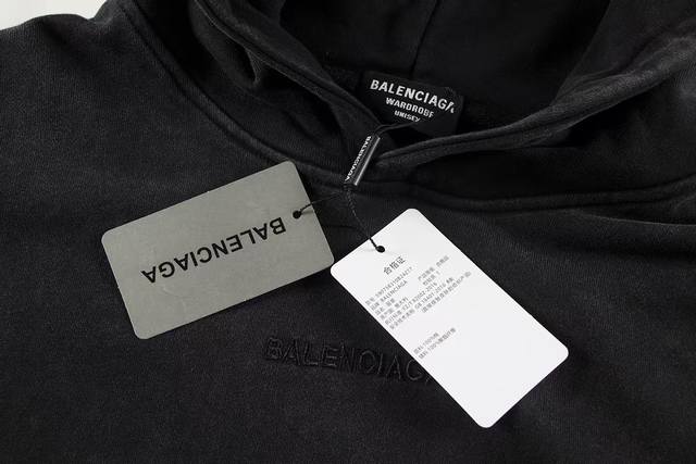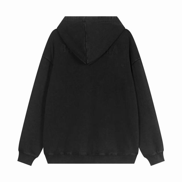 Price: Wholesale starting from one piece. Individual orders +10. Balenciaga popular washed embroidered logo hooded sweatshirt, unisex pullover sweatshirt, terry cloth sweatshirt. Details are replicated 1:1 from the original version. Made of 420g terry cloth fabric, high-quality embroidery. Sell at your own risk without worrying about quality. Sizes: M, L, XL, XL. Color: Black. Style Number: W9802.