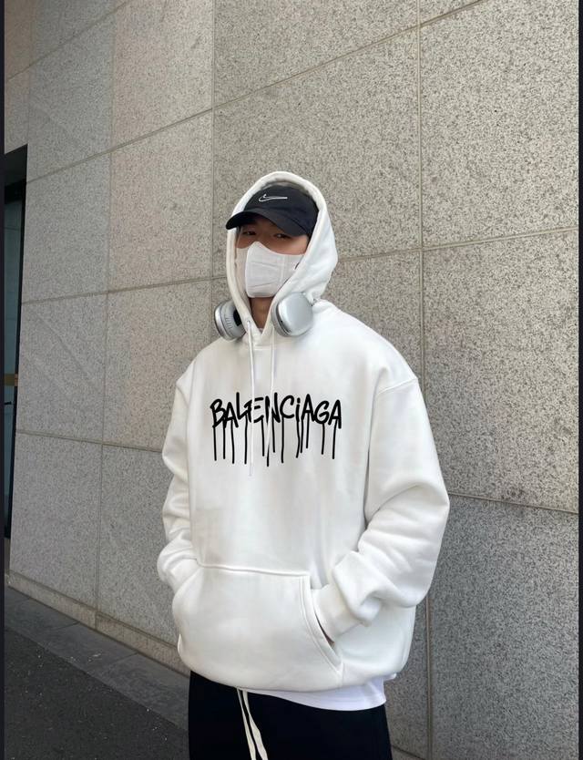 Balenciaga Winter Fleece-Lined Thickened Hooded Sweatshirt