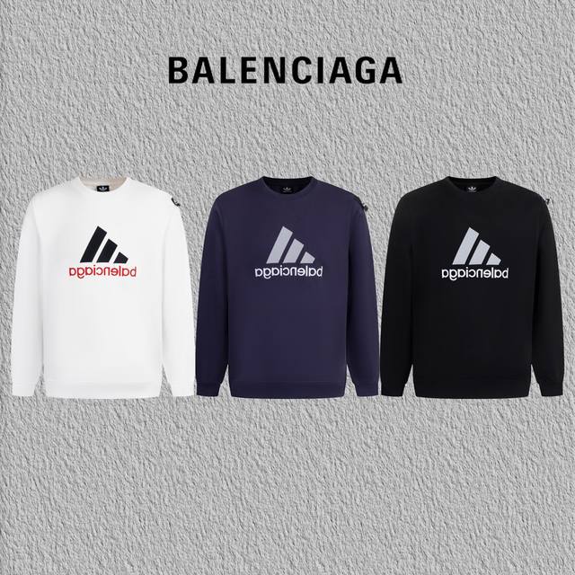 Style No. B41 Paris Collaboration Three-Stripe Embroidered Letter Crew Neck Sweatshirt Balenciaga, identical to those in boutiques. Fabric: 420g double-strand double-yarn terry cloth. 2