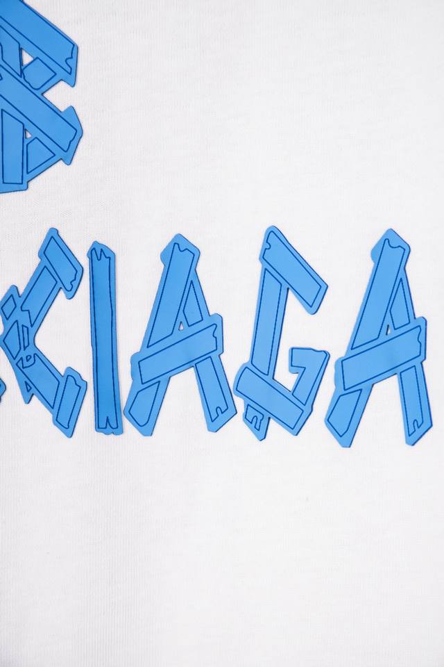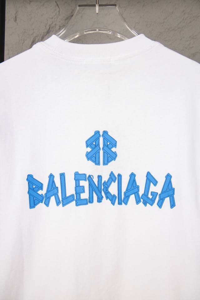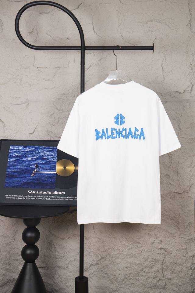Style No. M035 Balenciaga 2025S S Crew Neck T-Shirt, Special Price, No Returns or Exchanges. Made with 280g 36-count reactive eco-friendly fabric, custom-woven and dyed in the same dyeing vat as the original, featuring the same color ribbing. The print uses an elastic plastisol printing process, and includes all custom-made accessories. The inner lining and binding are top-quality. Colors: Black, White. Sizes: S-XL.