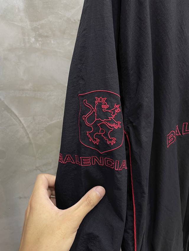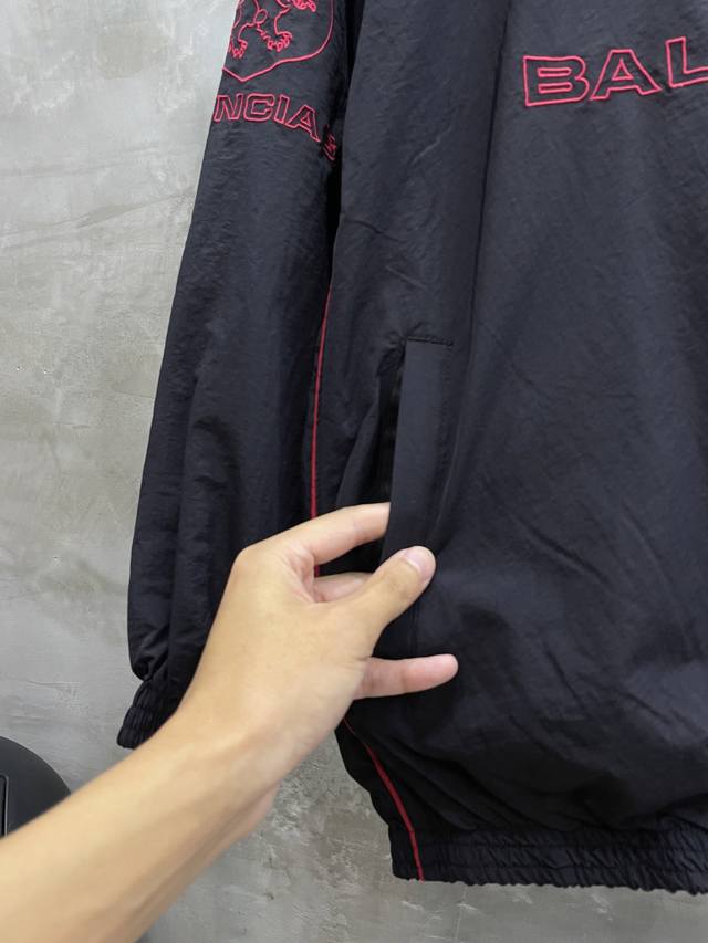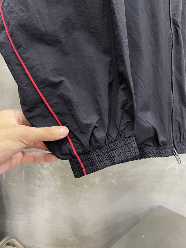Style No. #S581 Ddd Balenciaga Blcg 25Ss 79 Red Striped Manchester United Embroidered Tracksuit Jacket Correct Version DDD Custom Matte Taslon Windbreaker Fabric Waterproof Coating Process Lining with Grade 3 Polyester Bird's Eye Mesh DDD Os Super Loose Fit Design Side Zipper Pockets Small High Collar Design Inside Zipper Pocket DDD Patchwork Inlay Process Custom Hardware Zipper Windbreaker Double Zipper Design Tajima High-Speed Embroidery Machine Embroidered Hollow Letters Three-Dimensional Full DDD Long Pants Side Zipper Pockets Original Label Water Washing Tag Brand Packaging DDD Color: Black Ddd Sizes: 46 48 50 52 Ddd Size Chart: Length Chest Shoulder Width Sleeve Length Ddd 46: 72 124 55 56 Ddd 48: 74 128 56 57 Ddd 50: 76 132 57 58 Ddd 52: 78 136 58 59 Ddd Note: Manual measurement difference is 1-2 cm DDD