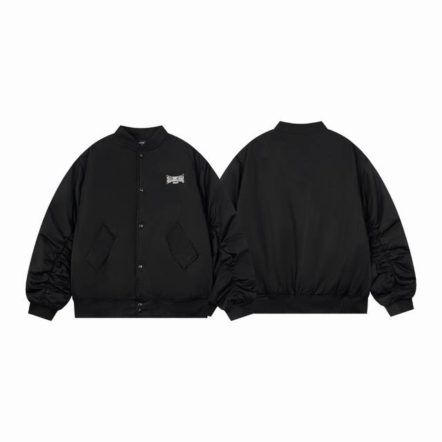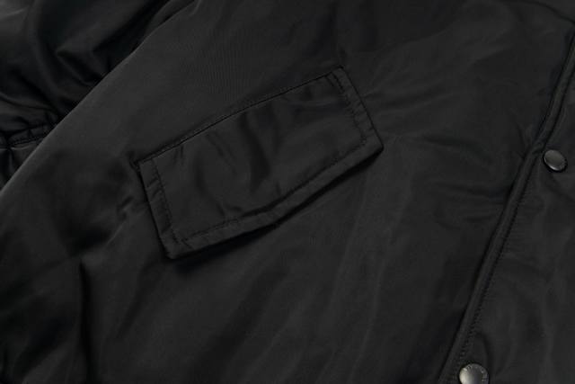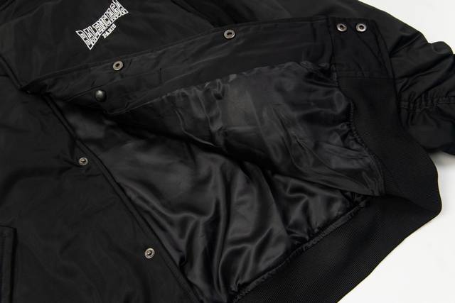 Style No. #S634 Balenciaga Blcg 24Fw Hollow-out Logo Embroidered Baseball Flight Jacket, Correct Version. Custom 100% Matte Nylon Fabric, 50D Memory Lining, 800G Composite Pearl Quilted Cotton. Classic Pilot Alpha Air Force Jacket Design, 3D Stereo Cutting Process, High- Density Embroidery with Tajima Embroidery Machine (Up to 100,000 Stitches). Inner Pocket Design, Custom Brand Logo, Snap Buttons, Original Label, Washing Tag, Brand Packaging. Color: Black. Sizes: 46, 48, 50, 52. Size Chart: Length, Chest, Shoulder Width. Xs: 69 x 132 x 56, S: 71 x 136 x 57, M: 73 x 140 x 58, L: 75 x 144 x 59. Note: Manual measurements may differ by 1-2 cm.