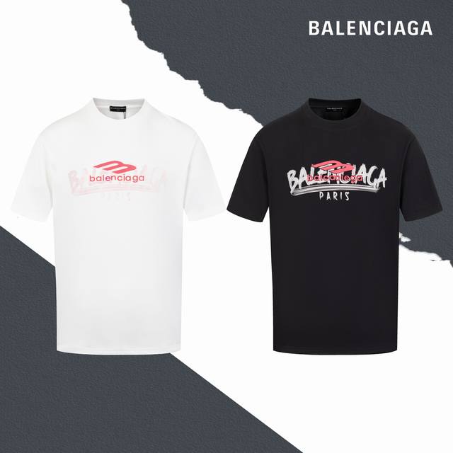 Style No. Sl184 Balenciaga Paris graffiti letter print round neck short sleeves