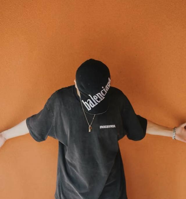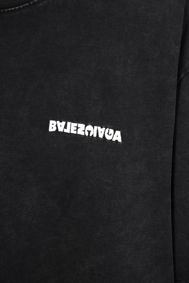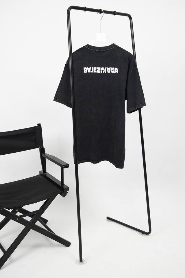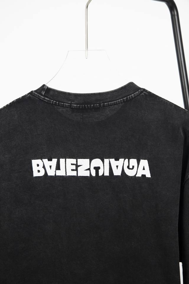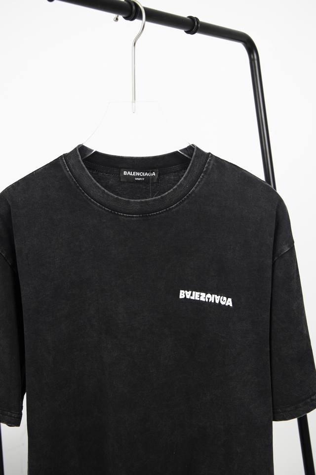 Style number: G74 - Top-of-the-line version! Balenciaga reverse logo embroidered washed and distressed short-sleeved shirt!