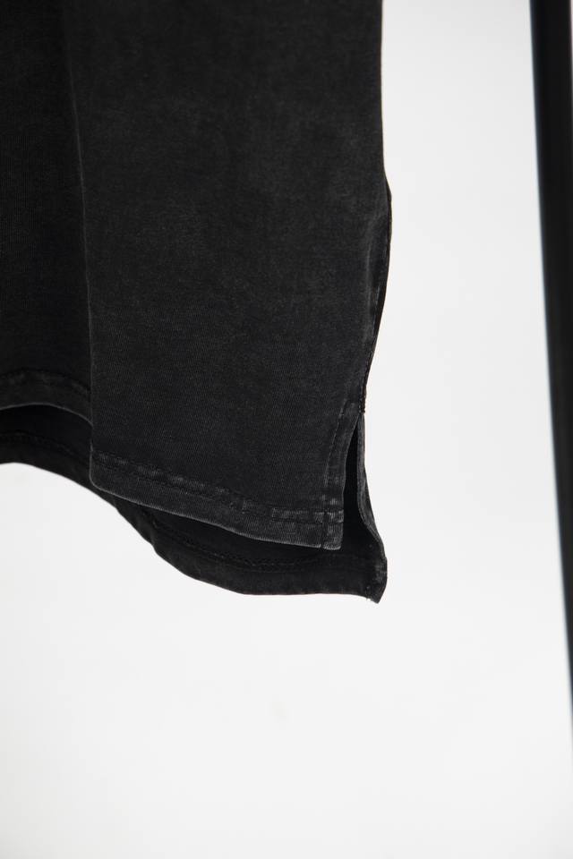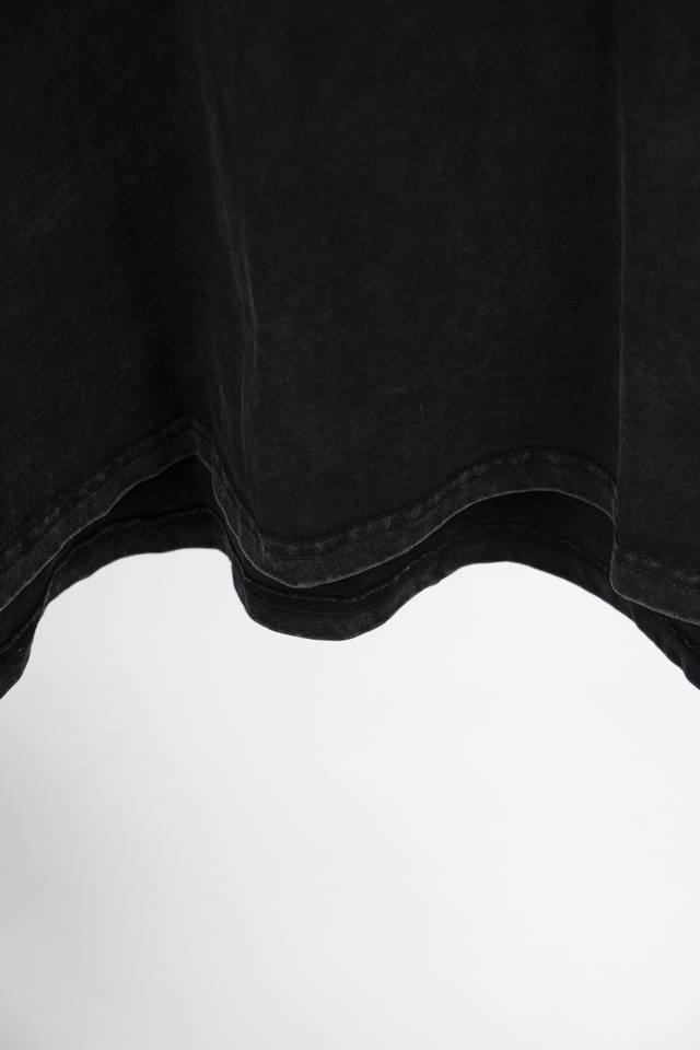 The fabric is 32S 230G cotton combed double yarn fabric, woven with high-quality long-staple cotton, and the surface adopts the etching process, which feels extremely comfortable to the skin. The color of the fabric itself is active black. After the sand washing process, it presents a natural fading effect. The fabric surface fades to a light black-gray, which is very high-end and has a more textured