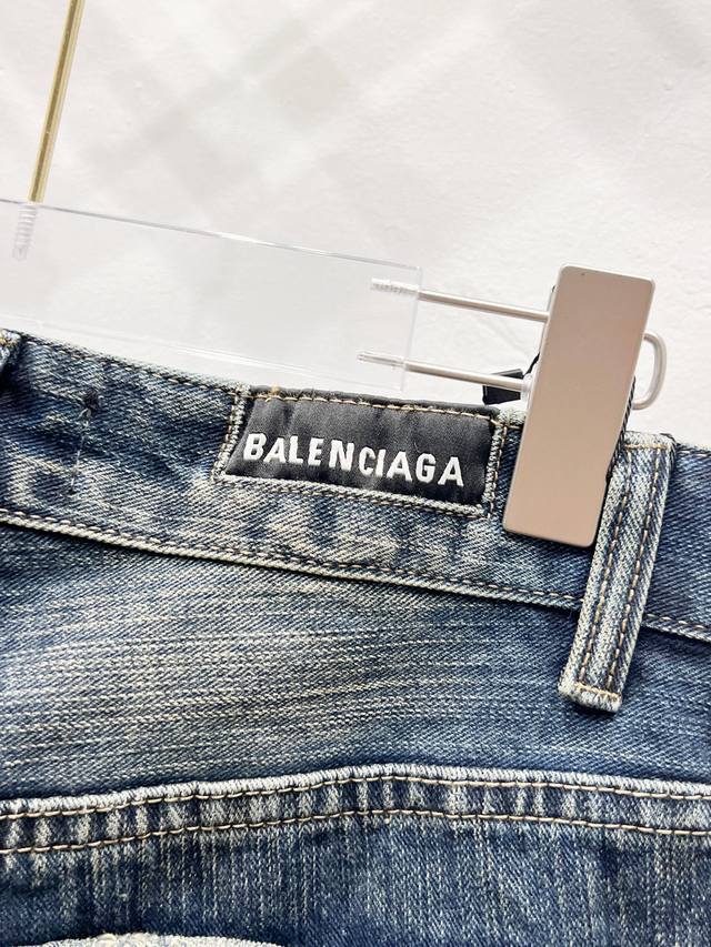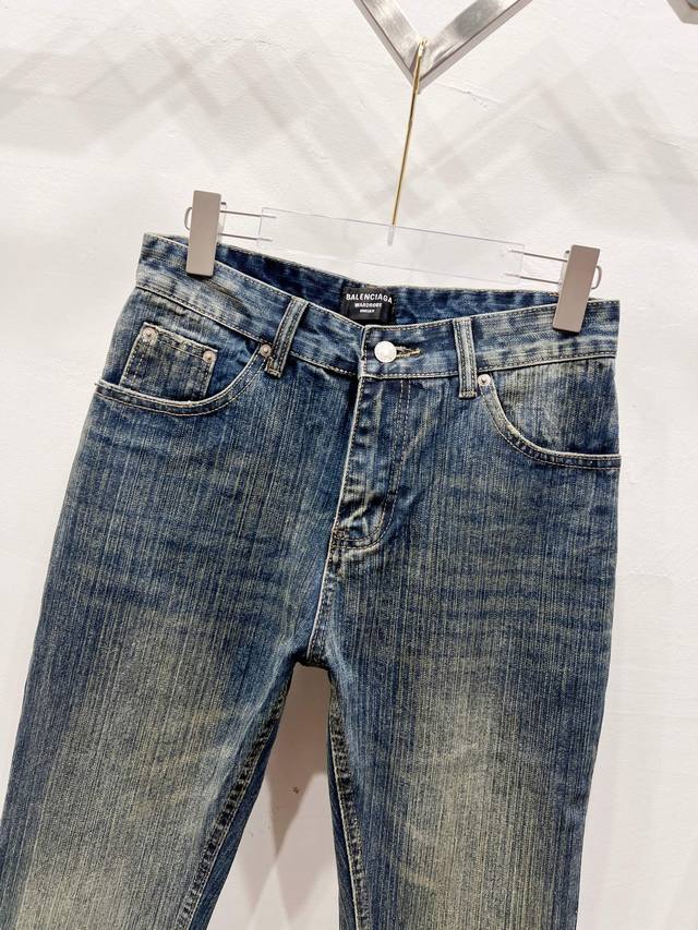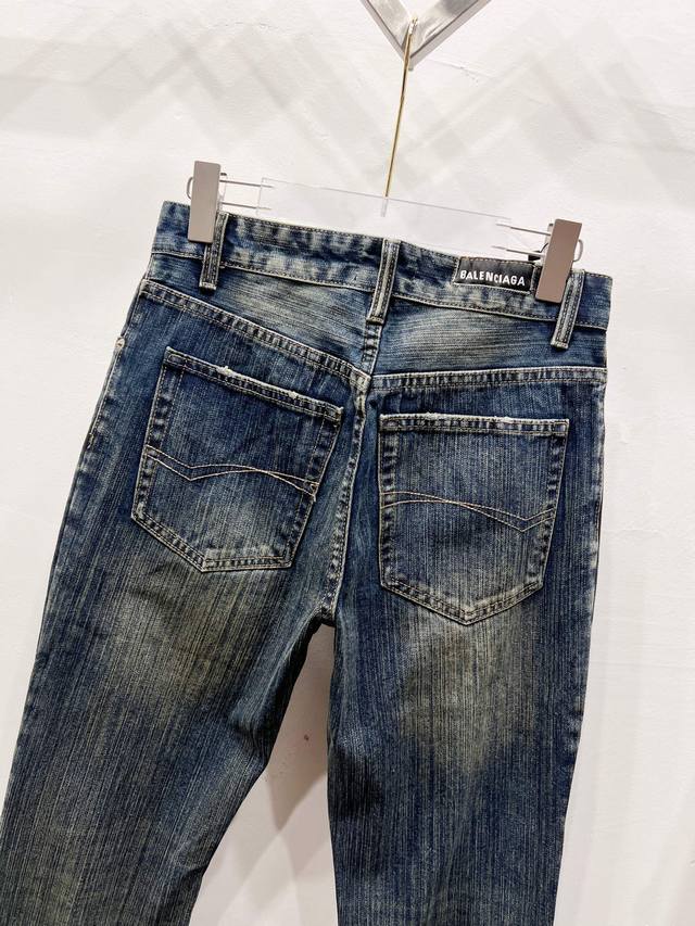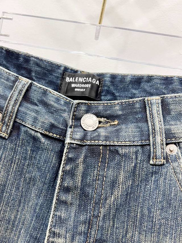 Balenciaga 2025 new washed distressed bamboo couple style washed loose flared jeans