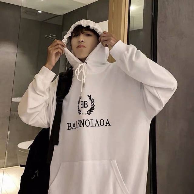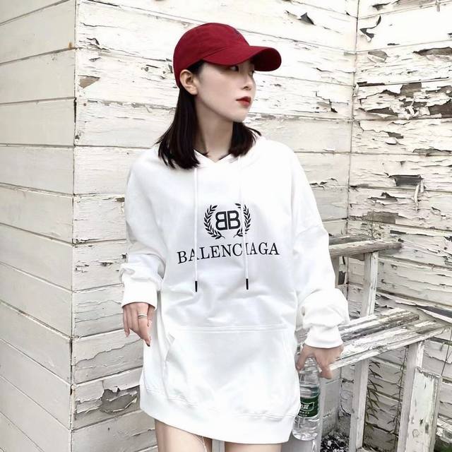 Sweatshirt Update: Terry Cloth Style No.: 862 Balenciaga Autumn/Winter New Crown Wheat Ear Print Hooded Sweatshirt. The classic Balenciaga wheat ear design, combined with a simple logo lettering, instantly elevates the overall aesthetic. Truly beautiful! Made with imported pure cotton terry cloth, comfortable and breathable. Imported plastisol printing process creates a clear and three-dimensional print. Simple and casual style, classic and sophisticated, truly timeless! Available in black and milk tea colors that are incredibly flattering and slimming! The oversized fit makes it easy to style anytime! Sophisticated yet youthful, a true classic that will never go out of style. A must-buy for trendy men and women this autumn/winter!! Colors: Black, White Sizes: M~2XL