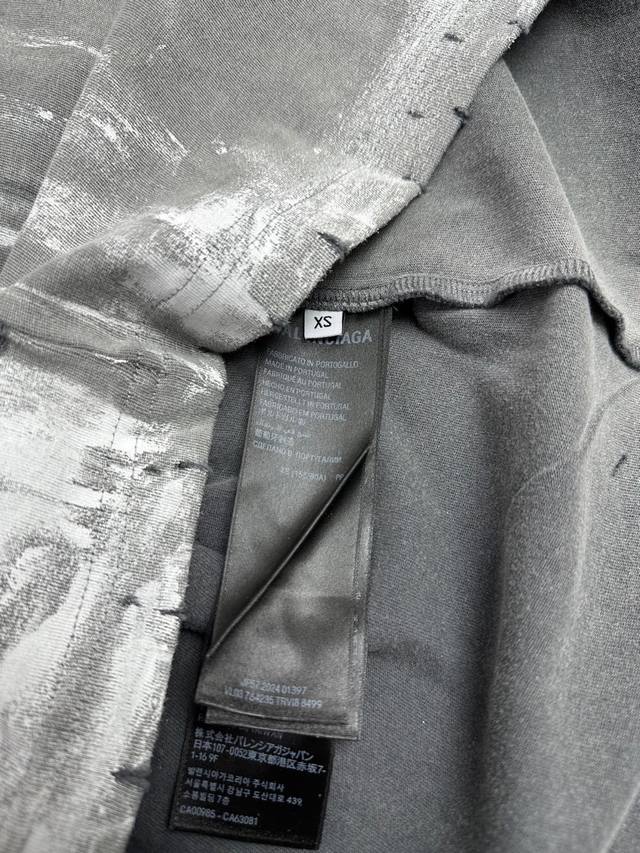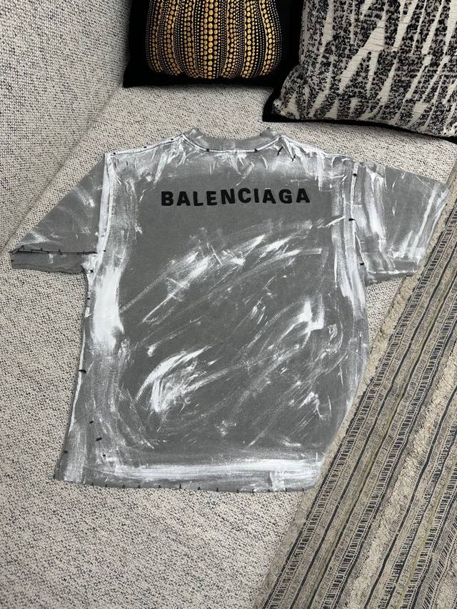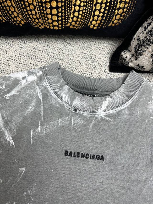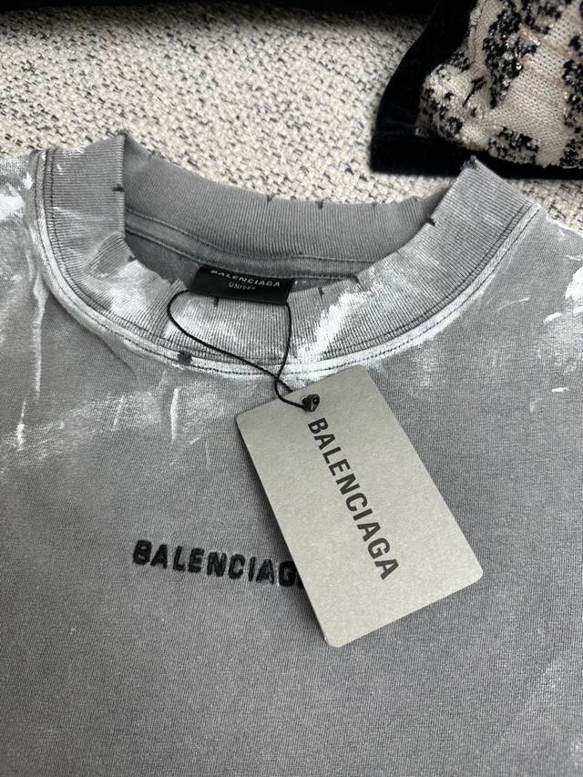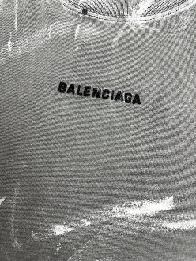 Top-grade, highest version, slightly larger in size. Balenciaga, classic distressed, dirty, heavy-duty printed round-neck short-sleeved T-shirt. Unisex couple's style, loose fit.