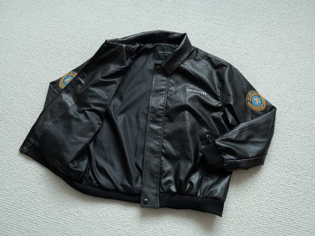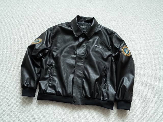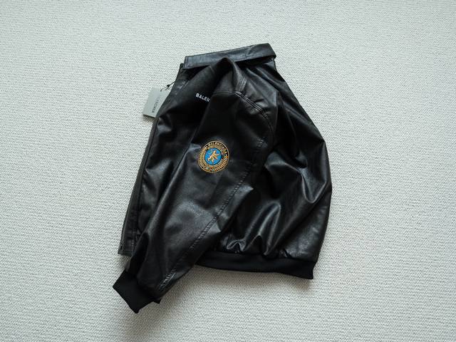 Top-quality Balenciaga lion armband PU leather jacket, unisex style . Color: Bl