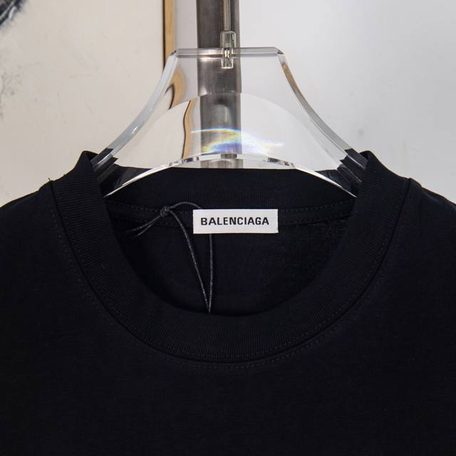 Zp Version [Exclusive Supply] Balenciaga 300g Crew Neck Short Sleeve T-Shirt Classic double-layer printed logo embossing process Officially synchronized high-quality version Fashionable, versatile, trendy Pure original quality fabric Complete with hangtag, neck label, wash label, and three tags Color: Black and White Sizes: S, M, L, XL Item Number: Ws10675