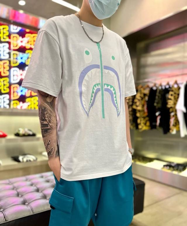 / 001058 Bape Fw22 shark pattern print round neck short-sleeved T-shirt for men an