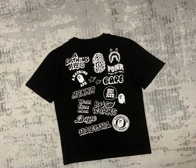 001077 A Bathing Ape Bape Bicolor Bape Graffiti Tee Two-tone back graffiti print