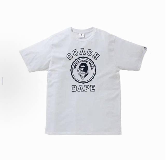 001103 A Bathing Ape Bape x Coach joint dinosaur print pullover short-sleeved T-shirt, unisex, size Smlxlxxl, white, black