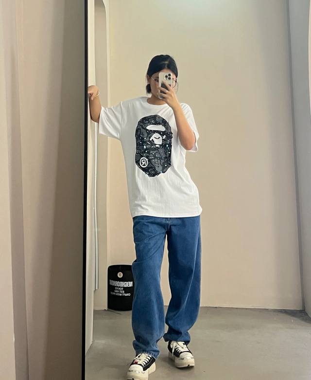 00118 A Bathing Ape Ape Head Series Starry Camouflage Short-Sleeved Drop Shoulder T-shirt Unisex Size Smlxlxxl Black, White