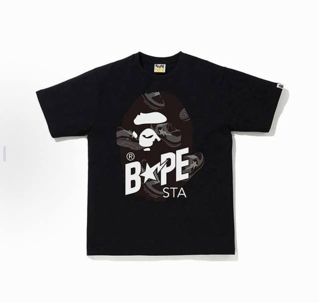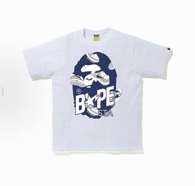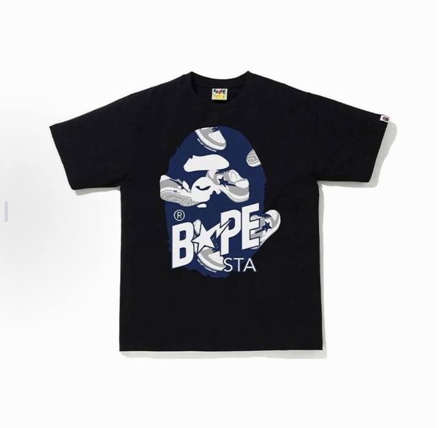 00162 A Bathing Ape Ape Head Series Ranpe Bape Sta Print Loose Short Sleeve T-shirt Unisex Size Smlxlxxl Black-Black, Black-Blue, White-Black, White-Blue