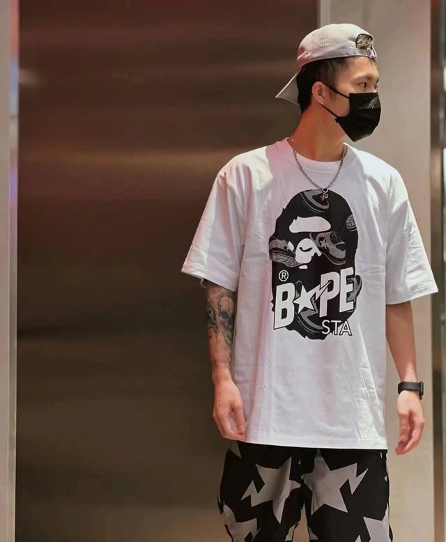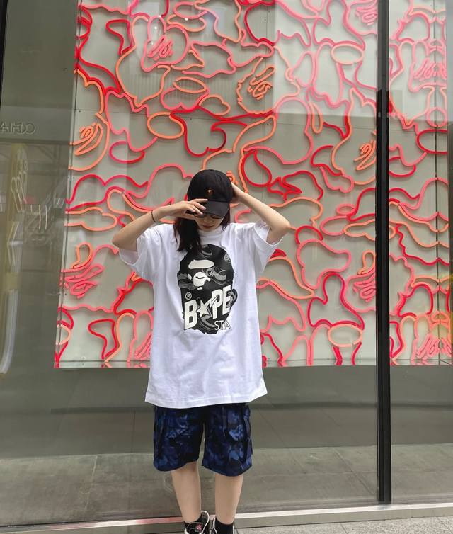 00162 A Bathing Ape Ape Head Series Ranpe Bape Sta Print Loose Short Sleeve T-sh