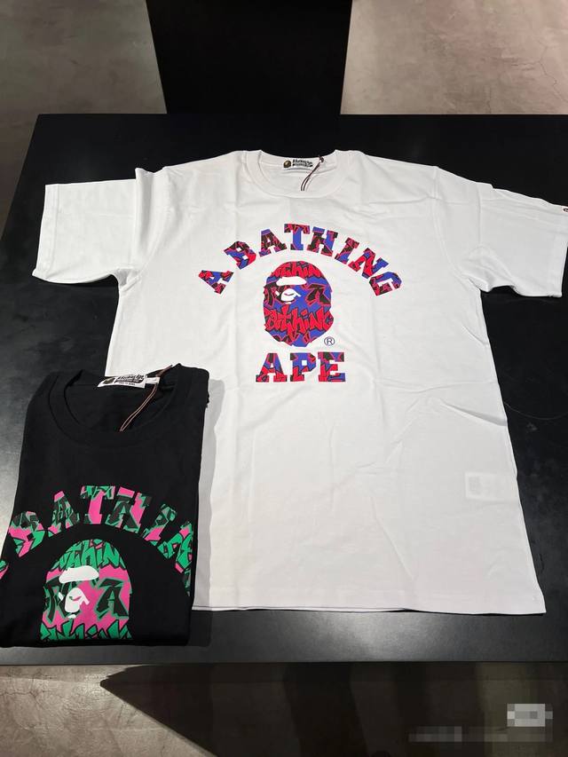 / 00189 Bape SS23 contrasting ape head graffiti print short-sleeved casual round n