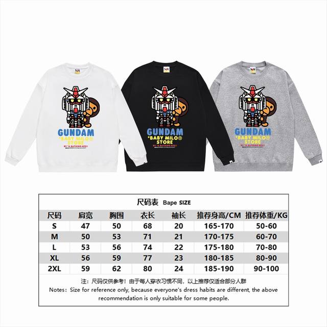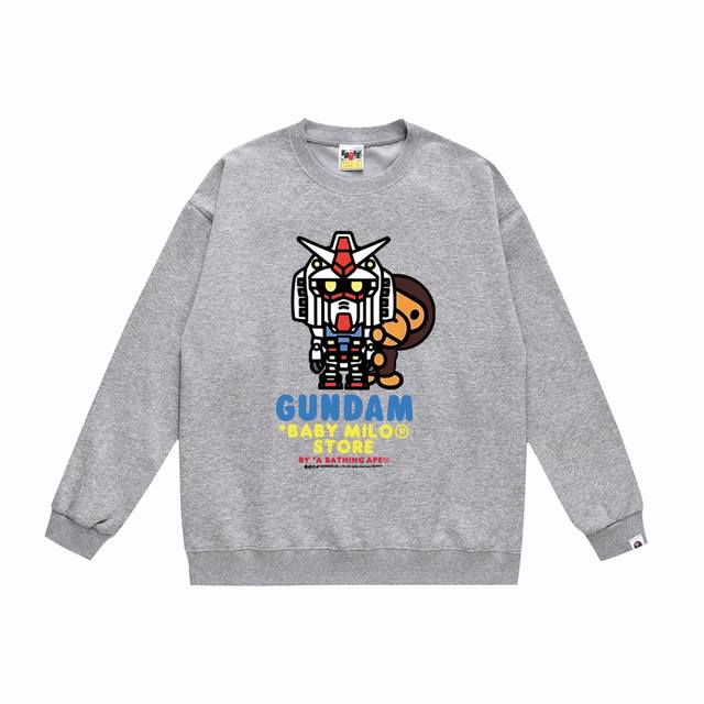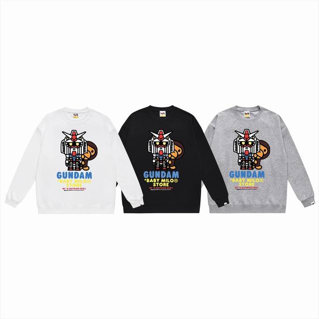 Bape robot monkey cartoon anime pattern printed round neck sweatshirt