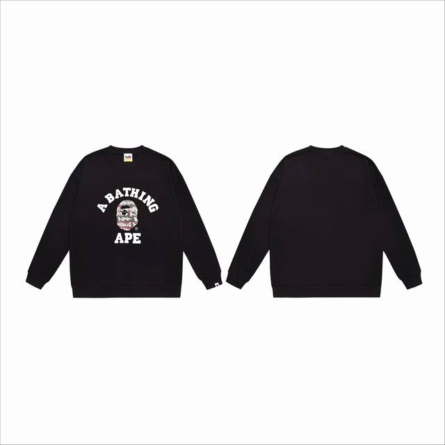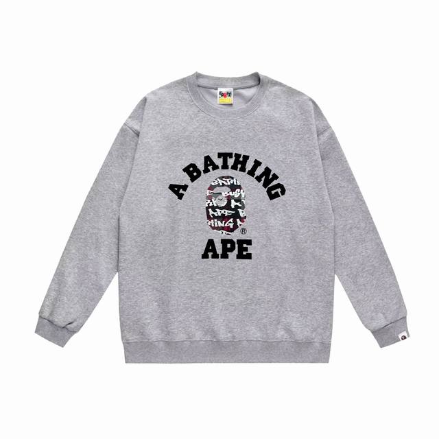 Bape ape head letter print graffiti plaid pattern round neck sweatshirt