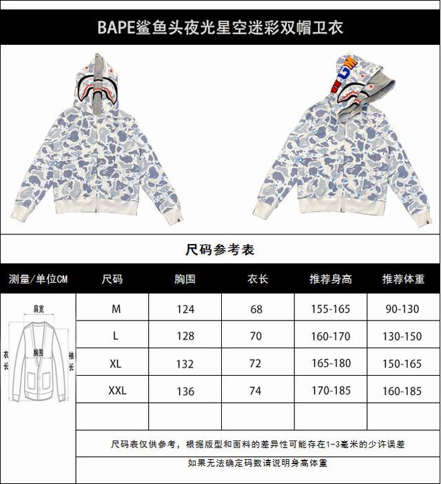 New arrival! High-end edition! Bape shark head luminous starry camouflage doubl