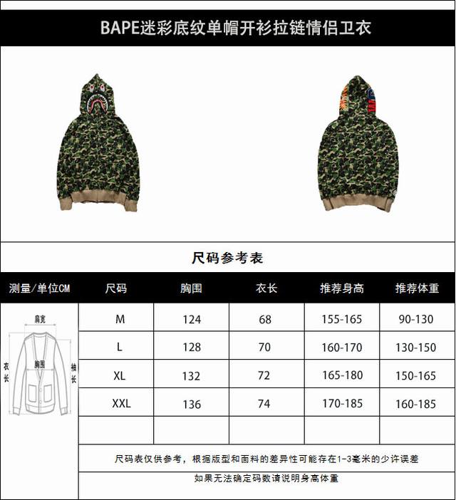 New arrival! High-quality Bape camouflage single-hooded zippered couple's sweat