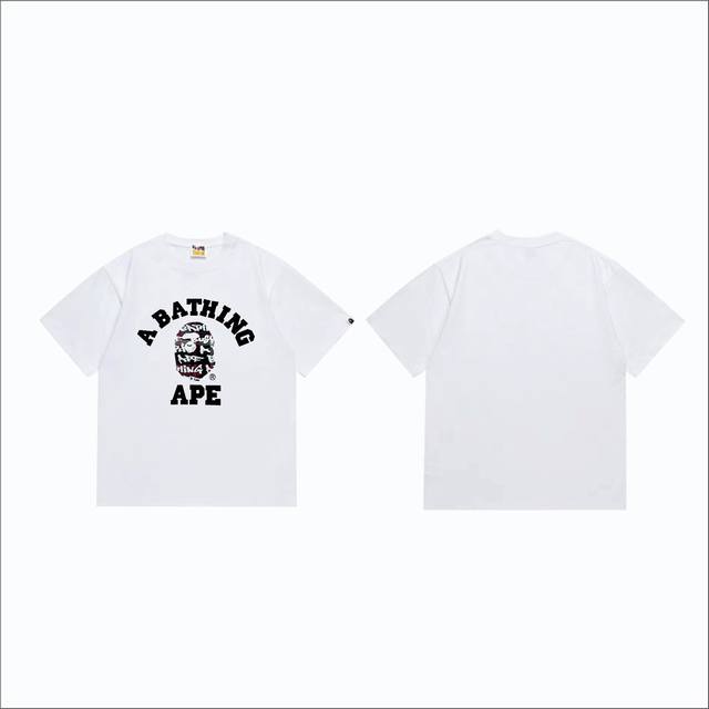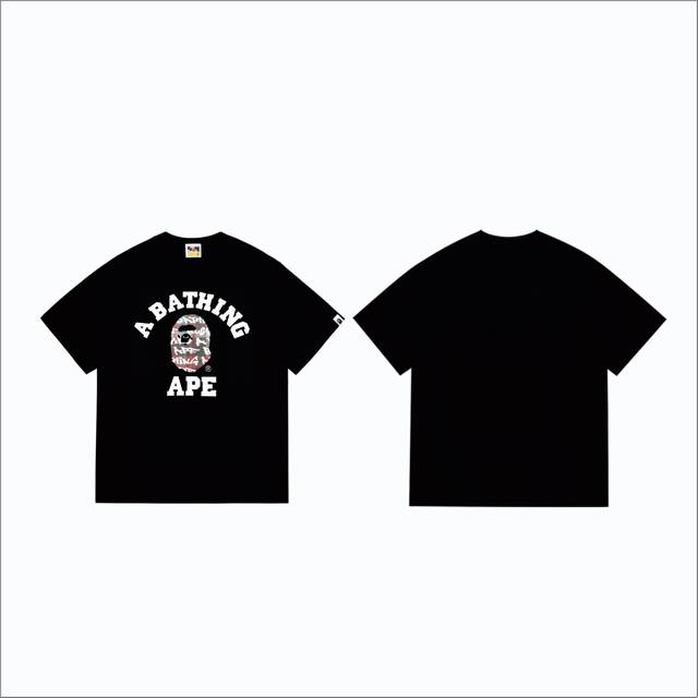 Bape ape head letter print graffiti plaid pattern short-sleeved T-shirt