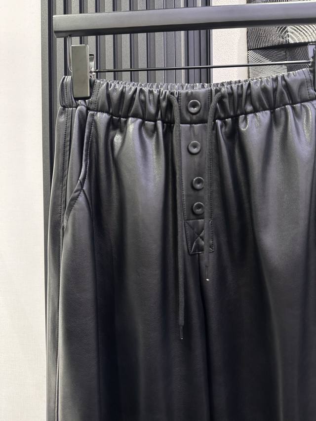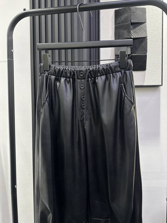 Bottega Veneta - Autumn/Winter New Simple Drawstring Cropped Protein Leather Pants, Soft and Comfortable Leather, Minimalist Style, High-End Feel, Monochrome Smlxl DDD