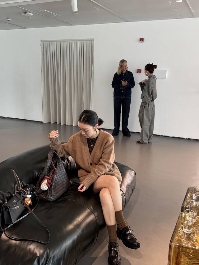 Bottega Ven*Ta 25Fw Autumn/Winter New Leather Buttoned Wool Knit Cardigan | Exclusive Yb Development! High-Quality Production! Made from carefully selected dense wool yarn, it boasts a soft, airy feel. The relaxed silhouette exudes a casual vibe, while the khaki tone incorporates the cardigan's signature understated quality. The eye-catching leather buttons are a subtle hint of luxury. The matte texture contrasts beautifully with the soft knit, creating an effortlessly sophisticated look. Pair it with a matching base layer, leather shorts, or wide-leg trousers for a truly sophisticated and relaxed feel. Available now in sizes S, M, L, DDD.