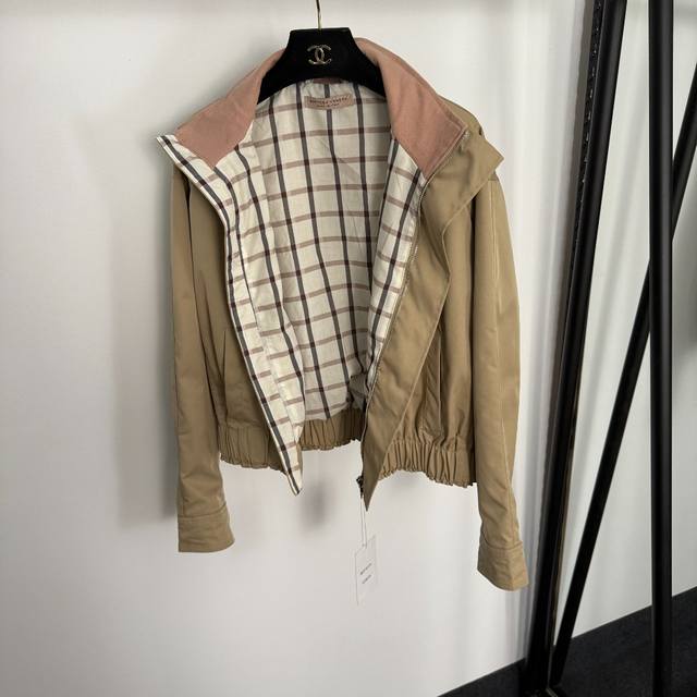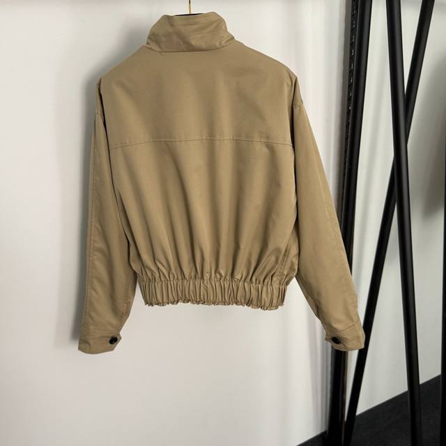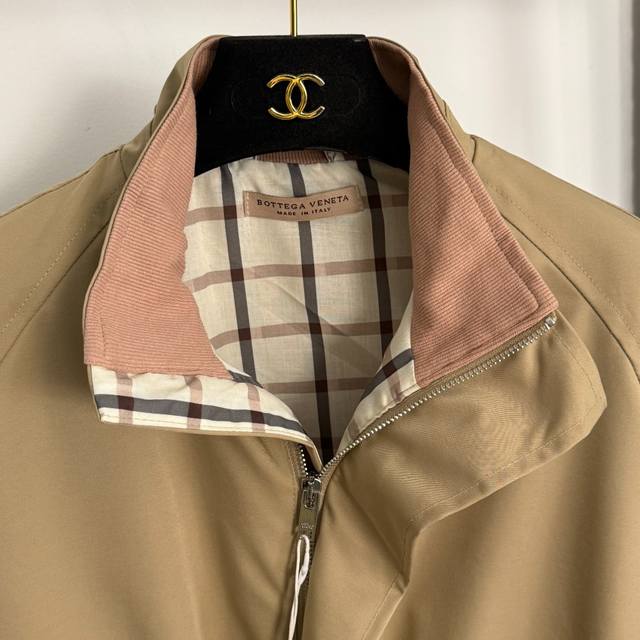 Style No. 20255289 Bottega Venet*Bv's new sweat-wicking and breathable plaid cotton lining with elastic waist, stand-up collar, long-sleeved zip-up jacket, khaki, Sml, M; Shoulder 51, Chest 102, Sleeve 55, Length 52; Weight: 0.505Kg.