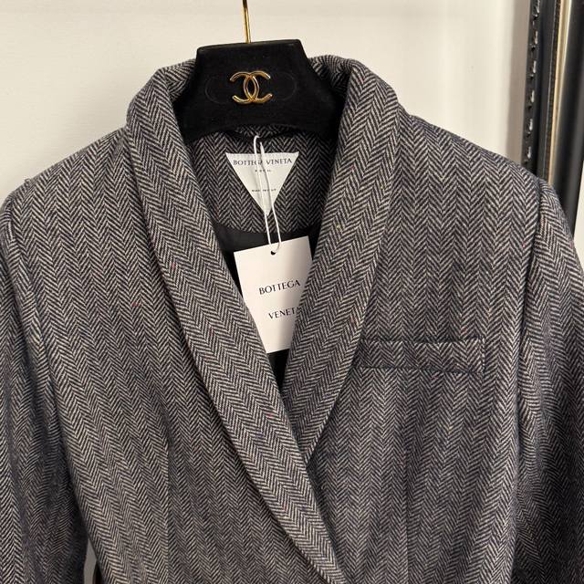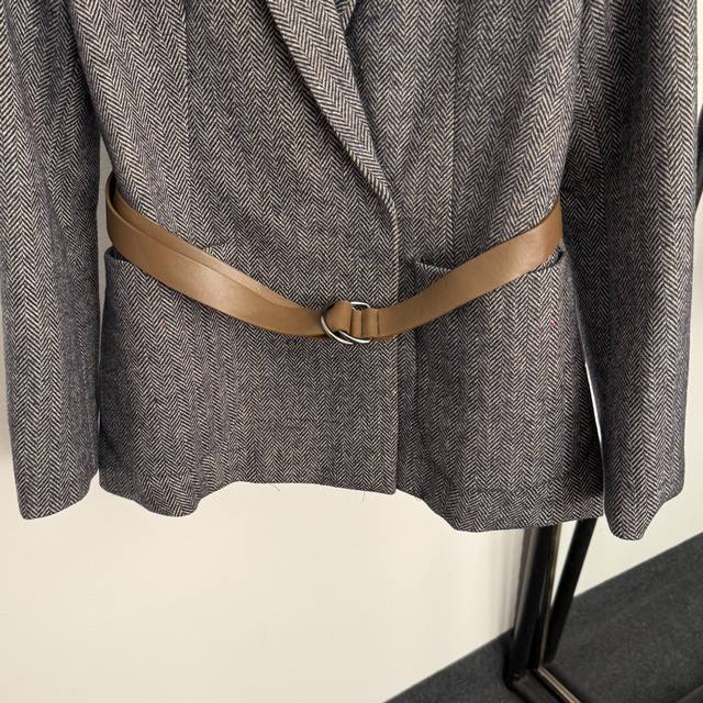 Style No. 20255835 Bottega Venet*Bv new light luxury retro V-neck waist long-sleeved suit jacket with belt, gray, Sml, M size: shoulder width 39, chest 100, sleeve length 59, length 67; weight: 0.855Kg.