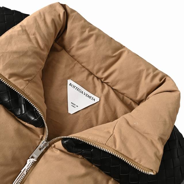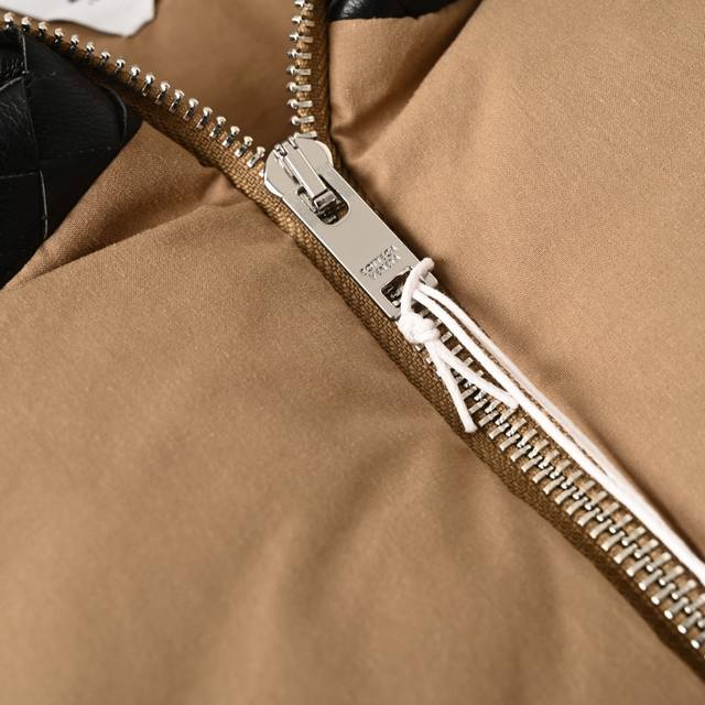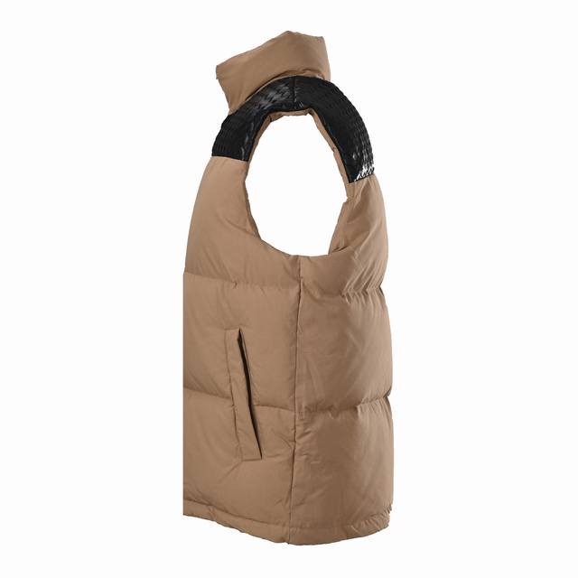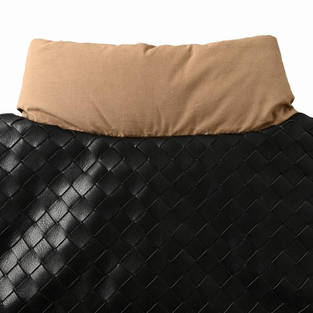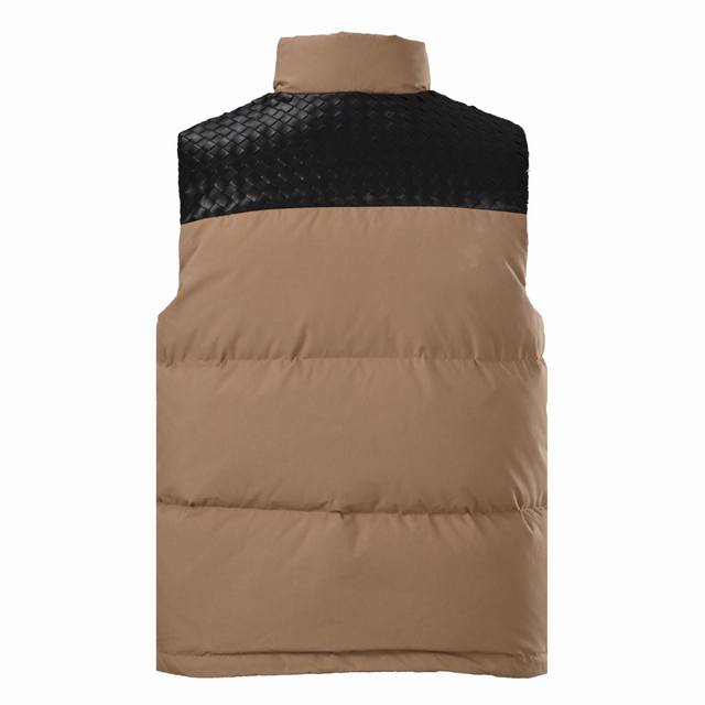 Bottega Veneta (Bv) Lambskin Woven Shoulder-Patch Down Vest (Ddd) This vest features a high-density, tightly packed warp and weft yarn, creating a uniform, fine, diamond-shaped granular texture on the fabric surface. This structure gives the poplin fabric a silky sheen, as the numerous warp floats and smooth surface allow for better light reflection. It is durable and has a smooth feel. The fabric undergoes a sanding process, using cellulase washing to gently and evenly polish the surface. This sanding removes some fibers, causing diffused light reflection and creating an extremely fine fuzz on the otherwise smooth poplin surface, making it softer, richer, and more skin-friendly. Large pieces of leather are precisely cut into thin strips of uniform width and even edges using a laser cutting machine. The uniformity of each strip is fundamental to a perfect weave. This process, usually done by experienced craftsmen, is the soul of Intrecciato. The strips are then fixed to a frame or specific position on a jacket panel. On the vest, these woven leather components, such as trim, stripes, or the entire front panel, are skillfully sewn together with the main fabric of suede poplin to form a complete and three-dimensional decorative structure. Made with 90% white duck down, weighing 170g, it ensures excellent warmth. The down undergoes rigorous selection and treatment to prevent down leakage, guaranteeing durability. Size: S-XL