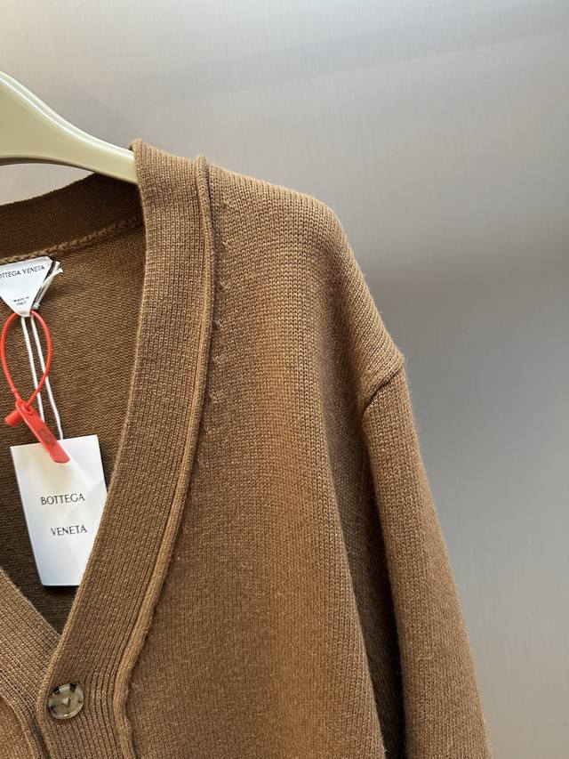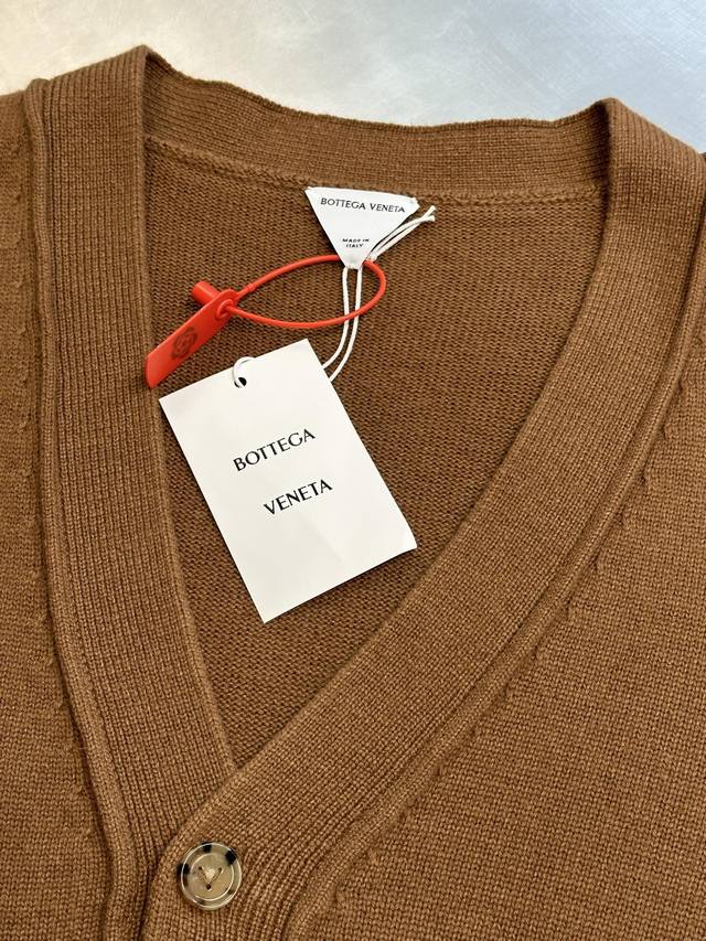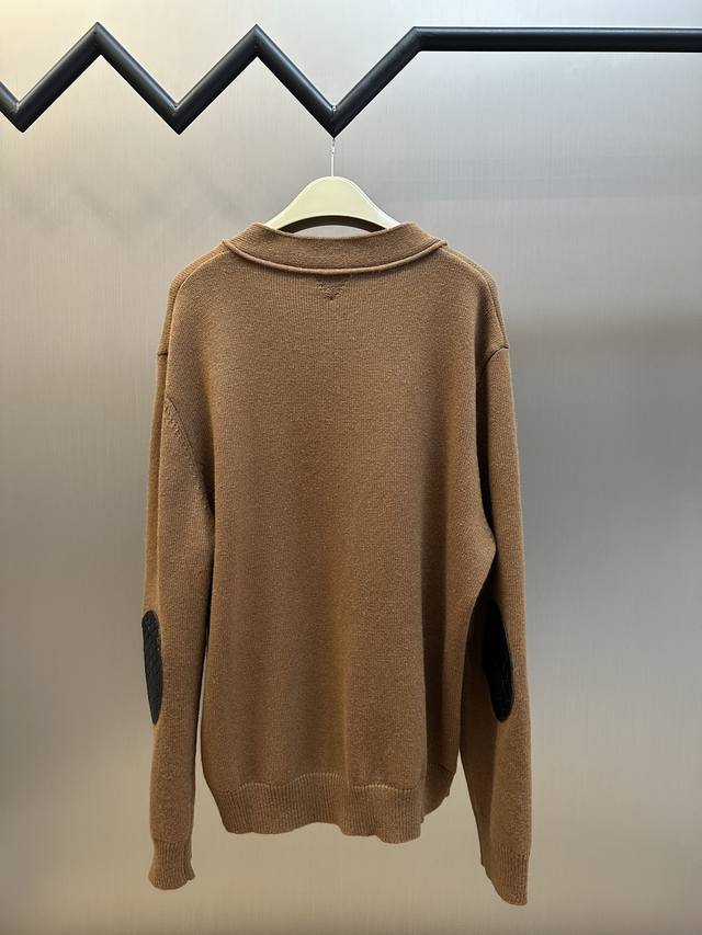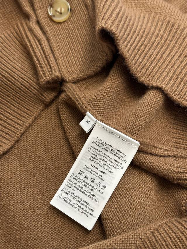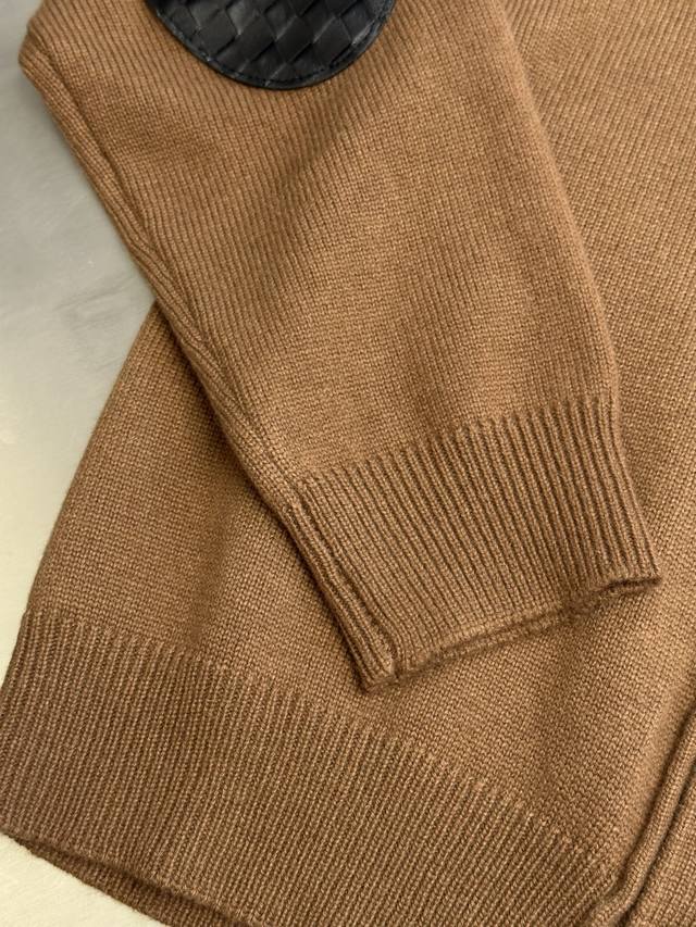 Bottega Veneta Woven Leather Cardigan DDD Made with custom ochre cashmere yarn, rich in color. The button spacing is designed for visual breathability, drawing the eye to wander through the staggered buttons, incorporating the wildness of genuine woven leather, precisely corresponding to the most frequent bending point of the elbow. DDD The trough weave technique, by adjusting the knitting method of the front and back continuous needle beds, creates a horizontal raised effect on the surface of the knitted fabric, resulting in a three-dimensional feel. Purely hand-woven, after 72 hours of tanning, the leather retains its original grain texture. Craftsmen use custom diamond-shaped cutters to ensure that each unit edge forms a slight arc, ensuring that the fibers do not experience irreversible stretching during weaving. DDD Purely hand-painted edges, requiring four layers of edge paint, each layer cooled to a specific temperature and then polished, ensuring the edges are as hard as ceramic and have a uniform sheen. DDD Size: SML XL DDD